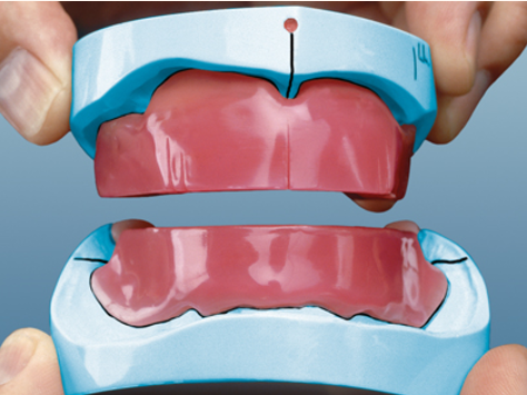 ในระหว่างการผลิตแผ่นฐาน ช่างเทคนิคของคุณอาจต้องกันไม่ให้มีรอยตัดบนโมเดลหลักเพื่อป้องกันการแตกหัก ซึ่งอาจส่งผลให้แผ่นฐานหลวมเล็กน้อยระหว่างการลองใช้งาน ในกรณีเช่นนี้ อาจใช้กาวติดฟันปลอมจำนวนเล็กน้อยเพื่อปรับปรุงความมั่นคง เมื่อฟันปลอมผ่านกระบวนการแล้ว ความพอดีก็จะแม่นยำ
